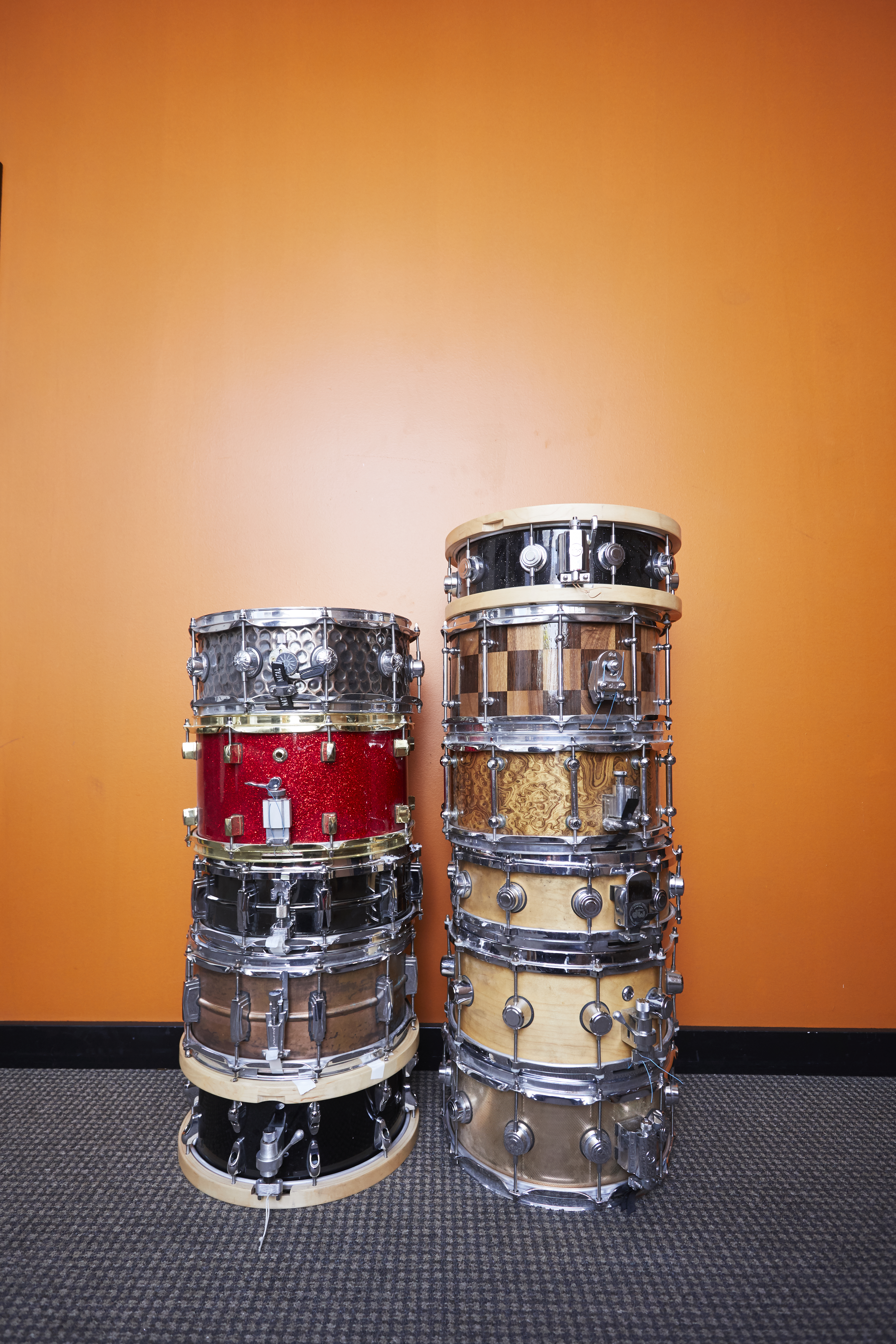 - DW Jazz Series: 22×16″ Kick, 12×12″ Rack Tom, 13×13″ Rack Tom, 16×16″ Floor Tom, 8×18″ Floor Tom